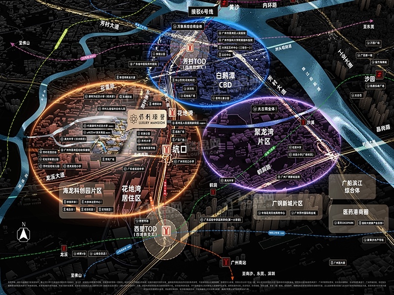 楼盘距离广州地铁1号线坑口站直线距离约仅约880米,2站即达双TOD(西朗及芳村),快速通达海珠越秀,道路交通及公交路网完善;国际大商圈林立,全国知名高端商业华润万象城、双太古等地标性商业在建中,未来打造国际消费城市新标杆,尽享百余方商娱。