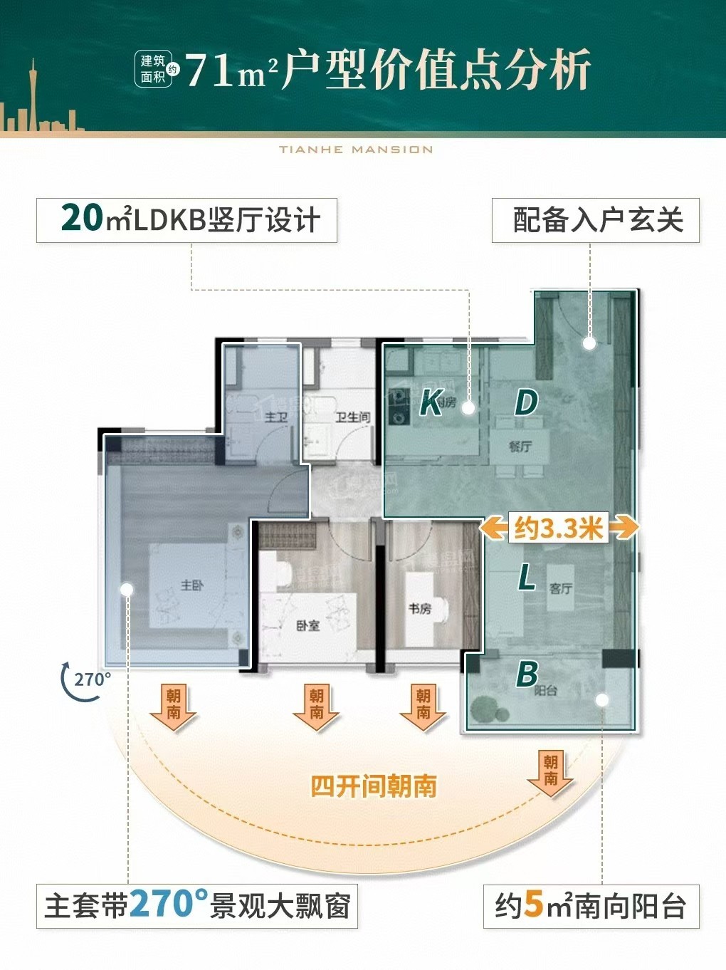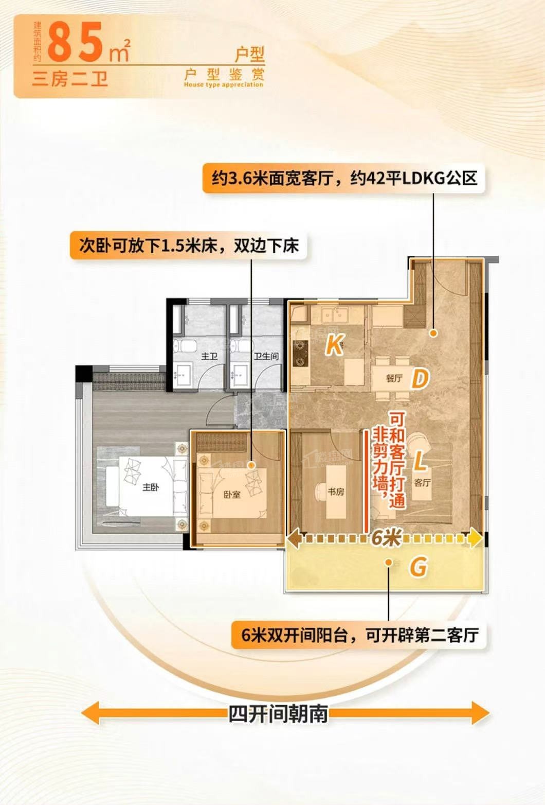 【珠江天河都荟】天河智慧城新规热门户型限时抢购!主推约85㎡东南向三房两卫,配备约6米景观阳台、约42㎡LDKB一体化空间,该户型高层总价约412万元,低层总价约372万元;同时建面约71-153㎡三至五房同步推售,房源分秒递减。项目近地铁21号线天河智慧城站,可快速通达金融城、珠江新城等核心区域;北侧规划公办九年一贯制学校,引入广州中学教育集团办学,周边还有华阳教育集团新塘小学、清华附中湾区学校二期(在建),覆盖全龄教育。紧邻广百广场、万科云城等商业中心,5公里内多个大型商业体,日常消费需求一站式满足。点击下方即可获取楼盘网专属优惠!